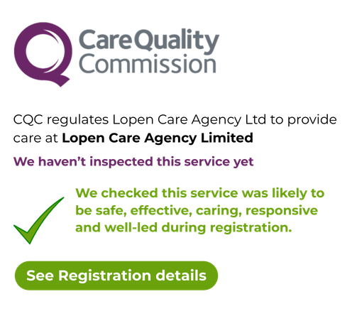 In addition to staff supply, Lopen Care Agency Ltd is also registered with the Care Quality Commission to provide regulated care services in England.